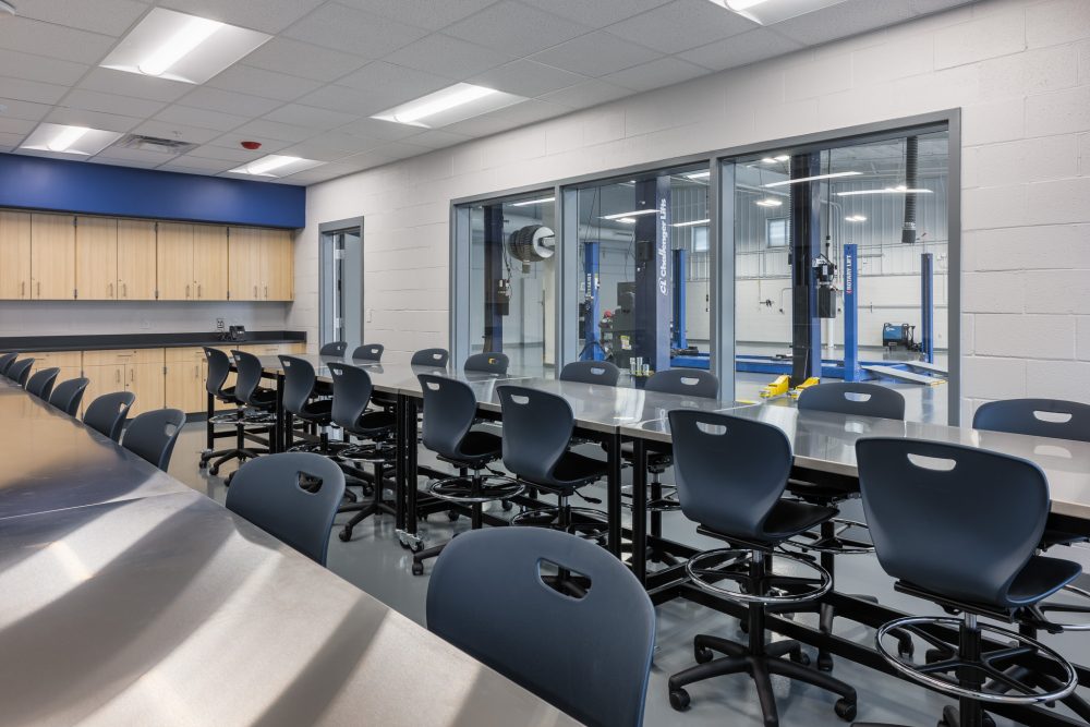 A vital component in the community’s plan for resiliency after catastrophic flooding in Eastern Kentucky, this $13.5M adaptive-reuse project, completed in the Winter of 2026, transforms an existing metal warehouse building by creatively and efficiently combining a career and technology learning environment, a fleet maintenance garage and a district storage facility.